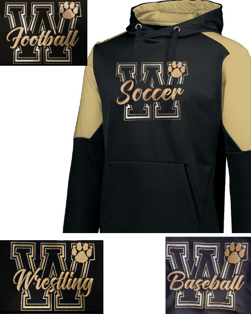 Embroidered Wildcat Black/Vegas Gold Hoodies Pick your sport!
