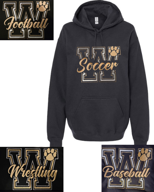 Embroidered Wildcat Black Hoodies Pick your sport! Gildan