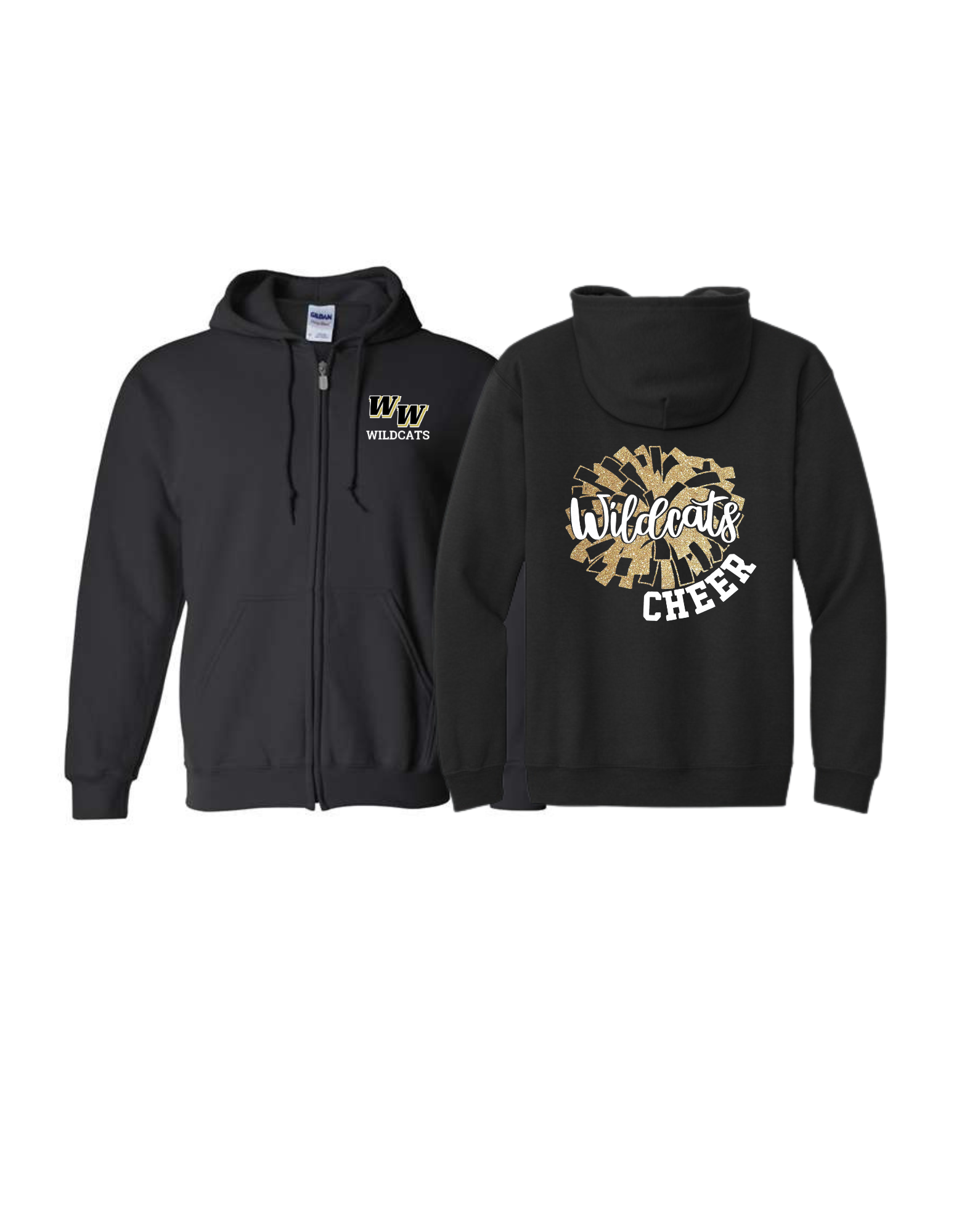 WWJR Wildcats Glitter Cheer Pom Gildan Heavy Blend Full Zip Hooded Sweatshirt Youth and Adult